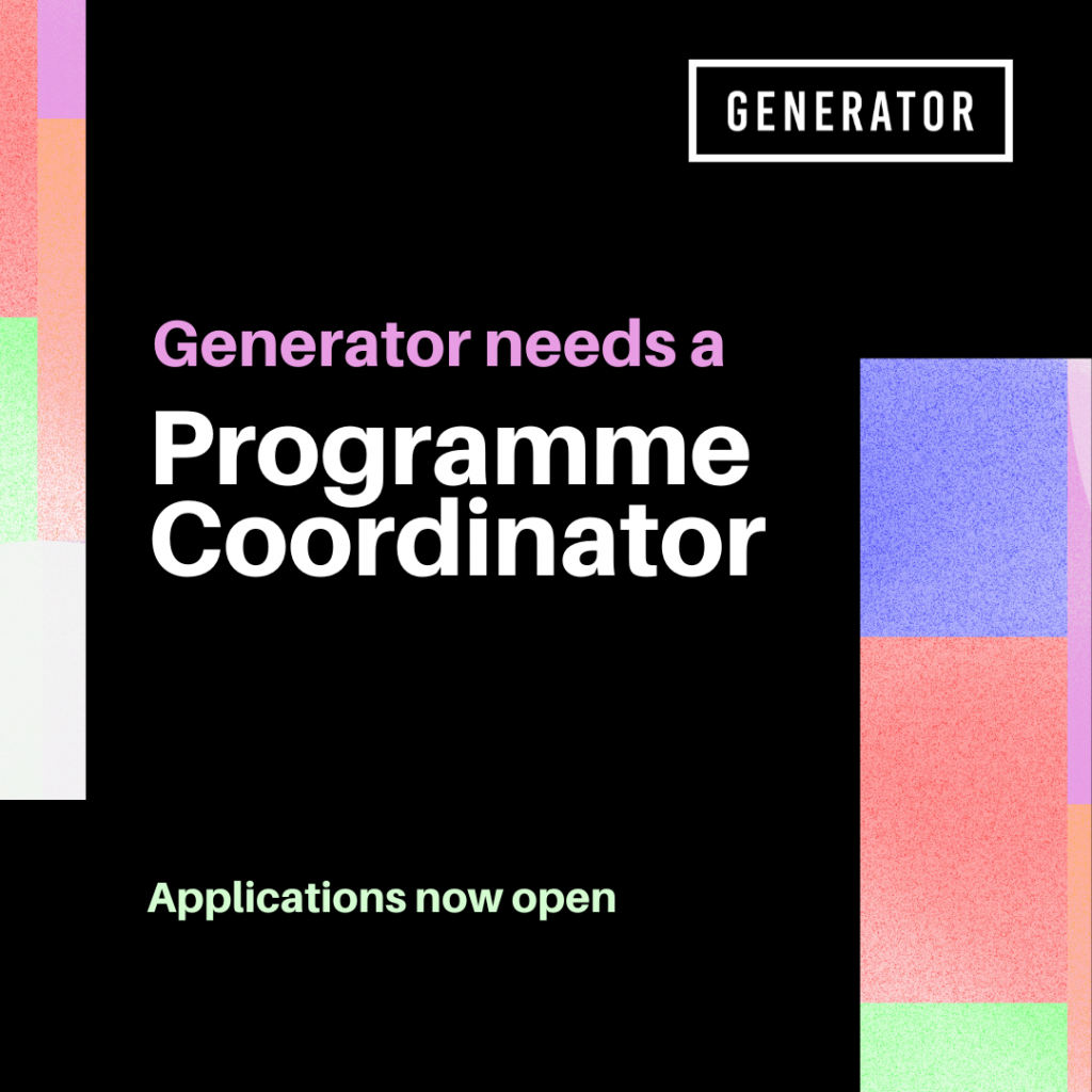 For more information on how to apply, visit https://generator.org.uk/vacancies/programme-coordinator/.