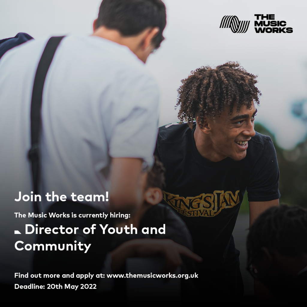 We’re The Music Works, a charity that specialises in working with young people in Gloucestershire, particularly those in challenging circumstances. We support over 3,000 young people a year in schools and in our state of the art studios and rehearsal spaces across the county to make music and reap the benefits of creativity, despite whatever barriers they face. We’re looking for an ambitious and inspiring Director of Youth and Community to help grow and deliver our programme, setting a vision and strategy for how we’ll reach more young people.
