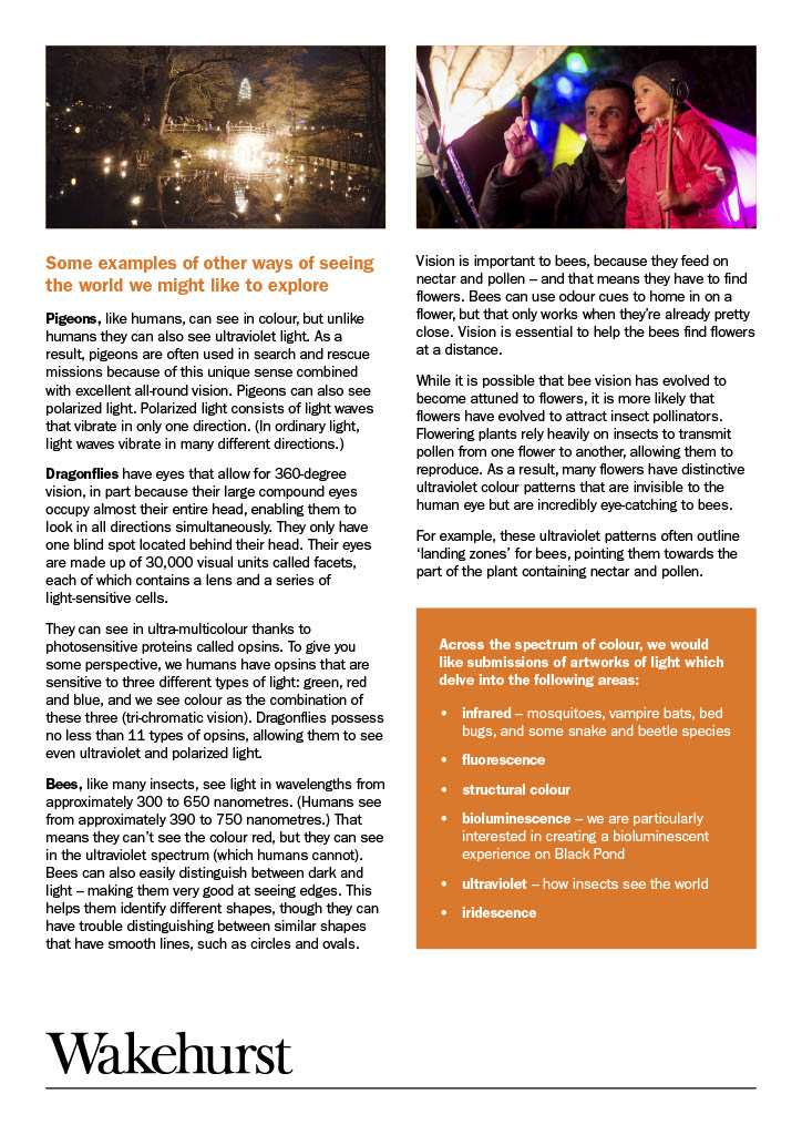 In 2022 Glow Wild will explore the full spectrum of colour, celebrating the diversity of adaptation in nature. Discovering colour connects us to the world