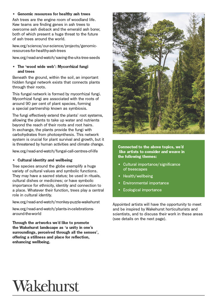 We are seeking artists of all disciplines who can help make the invisible visible and communicate important themes selected by Wakehurst in a way that is tangible, engaging, relatable and inspiring for the general public.