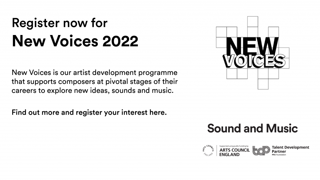 New Voices is a unique opportunity for composers to take essential time to explore and develop their work. Whether you live in an urban or rural environment, whether you trained at a conservatoire or are self-taught, whether you produce electronic or acoustic work, or whether you have many years’ experience or consider yourself ‘emerging’. We know there isn’t one model that will or should fit everyone.